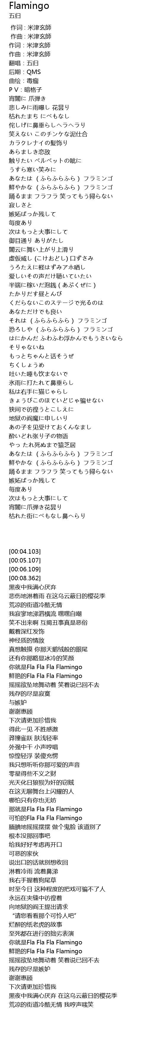 | [00:46.936] | 鲜やかな (ふらふらふら) フラミンゴ |