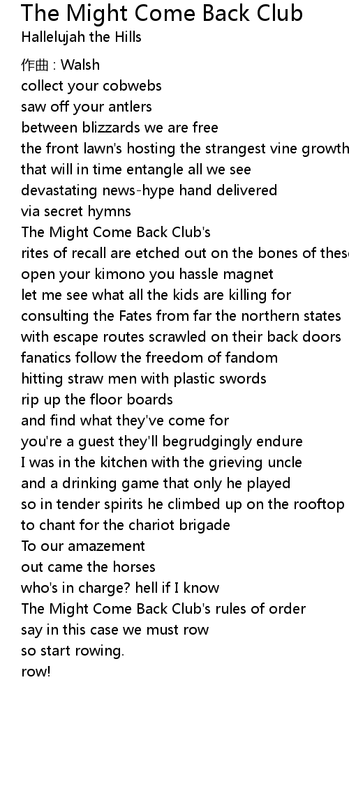 | Song | The Might Come Back Club |