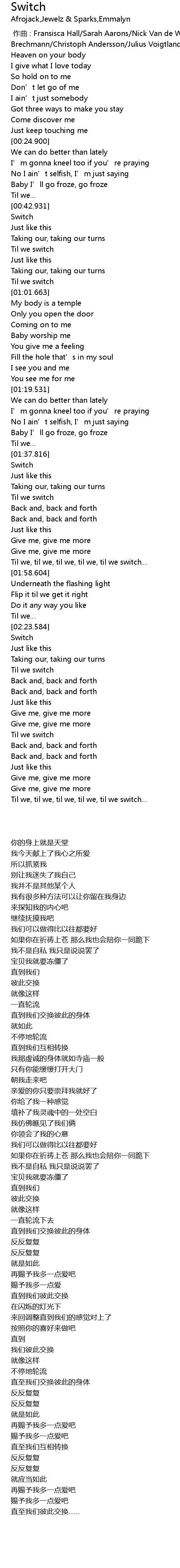 | [02:49.354] | Til we, til we, til we, til we, til we switch… |