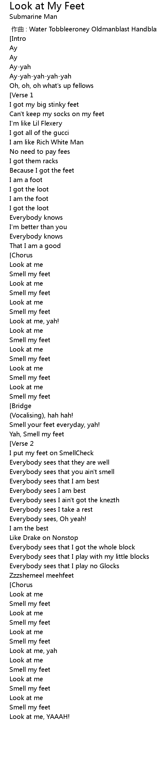 | [00:50.76] | Smell my feet |