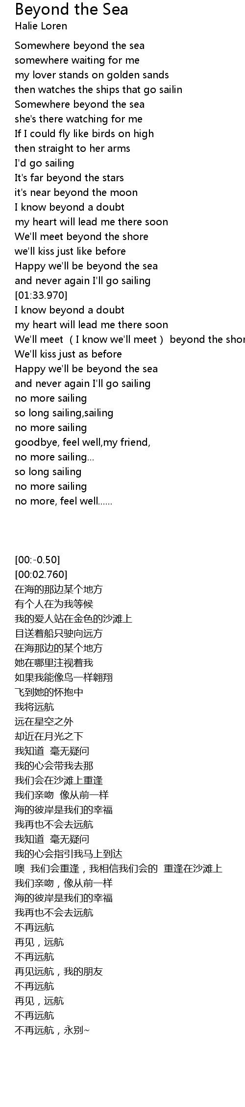 | [02:28.290] | Happy we'll be beyond the sea |