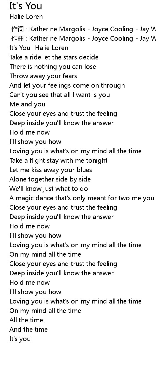 | [03:35.872] | Loving you is what's on my mind all the time |