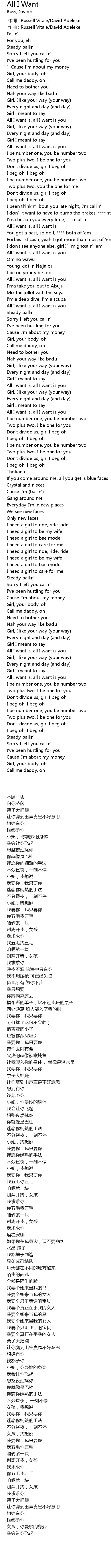 | [00:00.000] | 作词 : Russell Vitale/David Adeleke |
