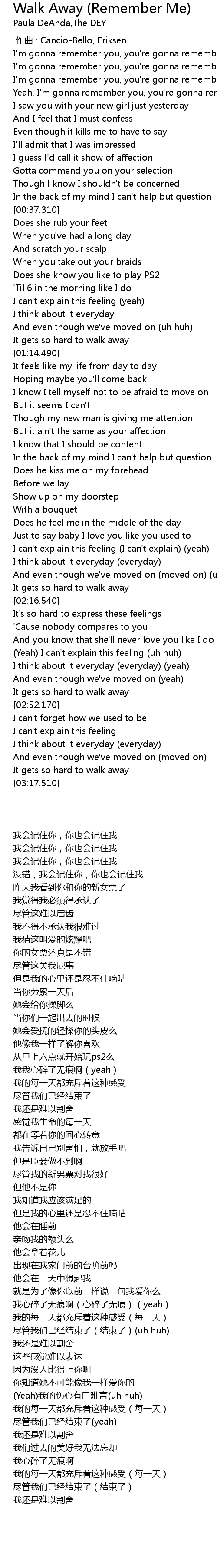 | Song | Walk Away (Remember Me) |