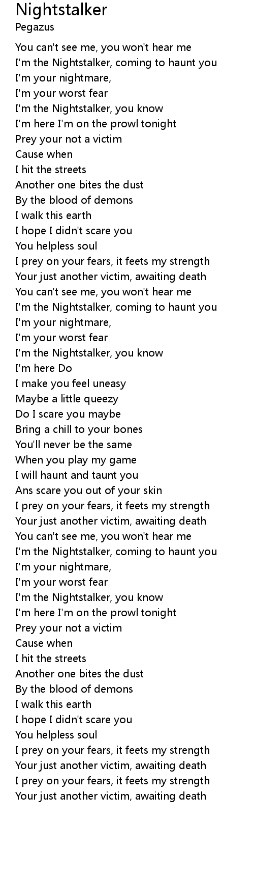 I'm the Nightstalker, coming to haunt you |