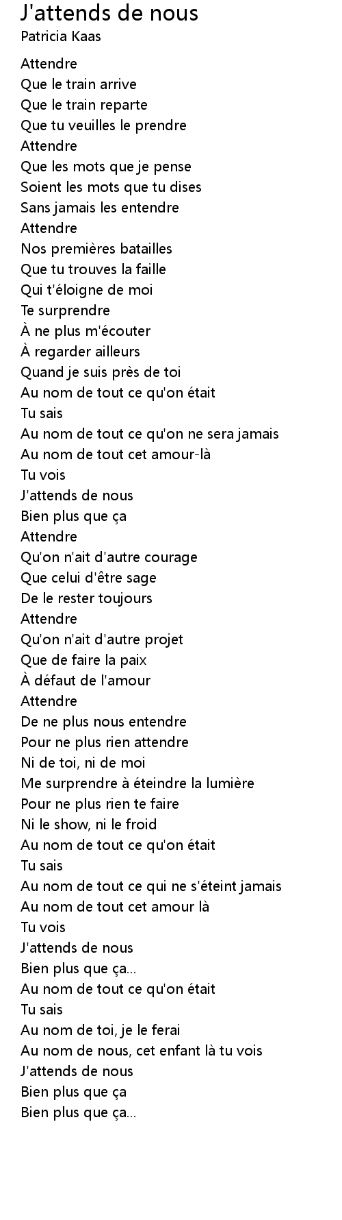 | Song | J'attends de nous |
