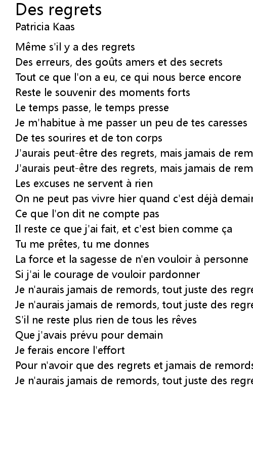 | Song | Des regrets |