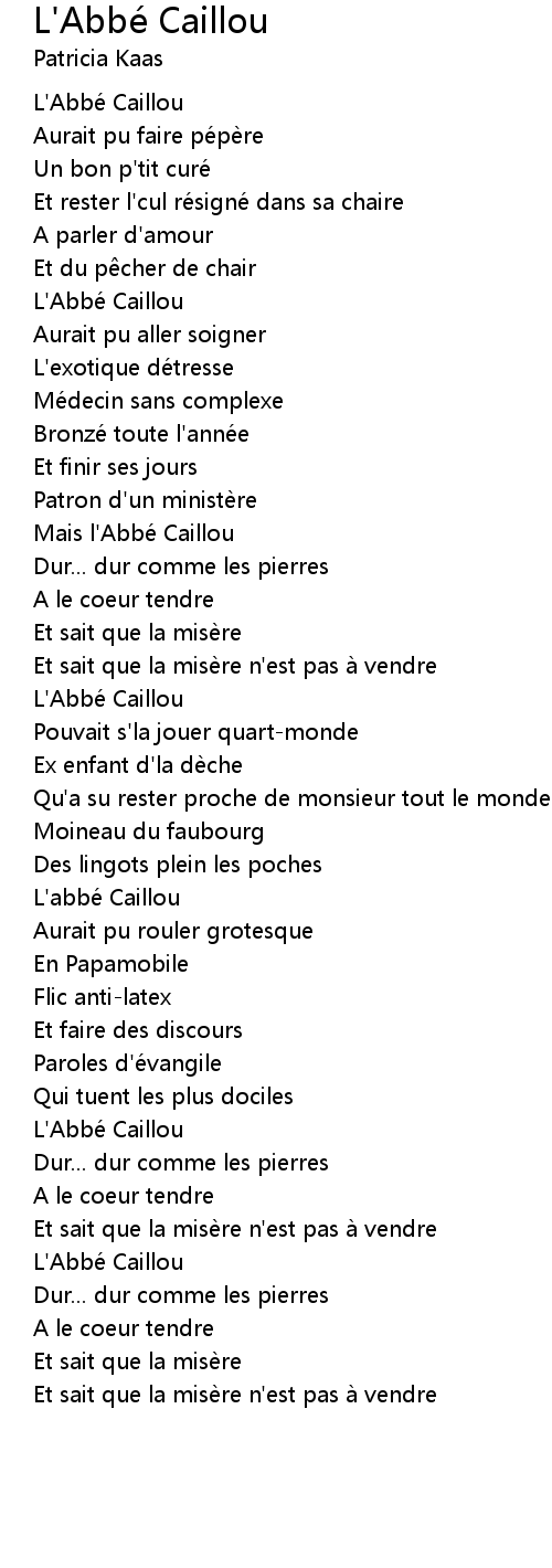 | Song | L'Abbé Caillou |