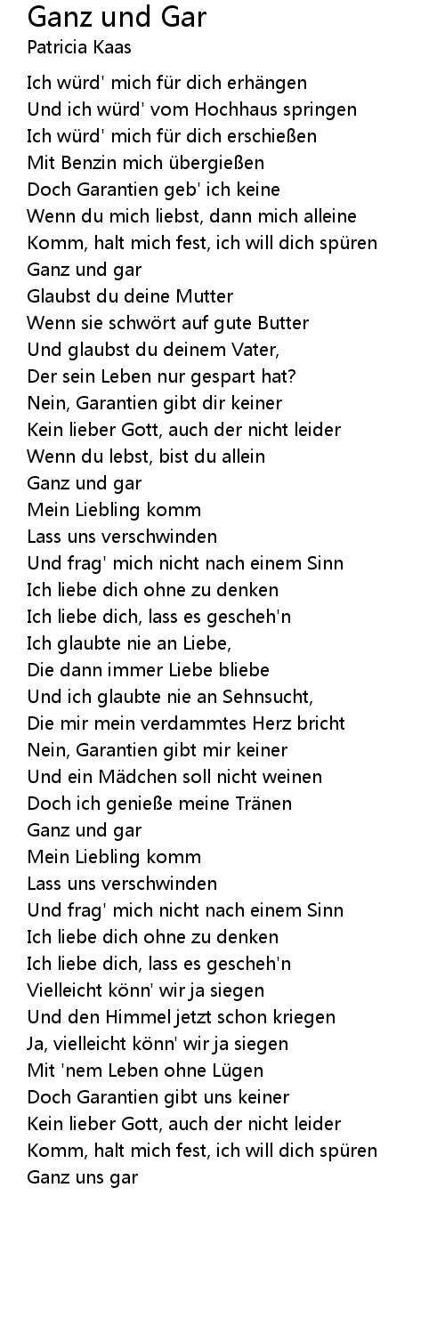 | Song | Ganz und Gar |
