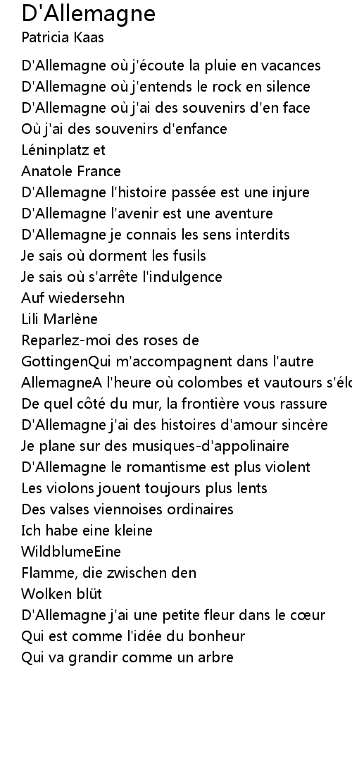| Song | D'Allemagne |