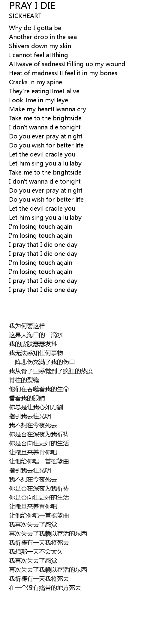 | [02:13.84] | I pray that I die one day |