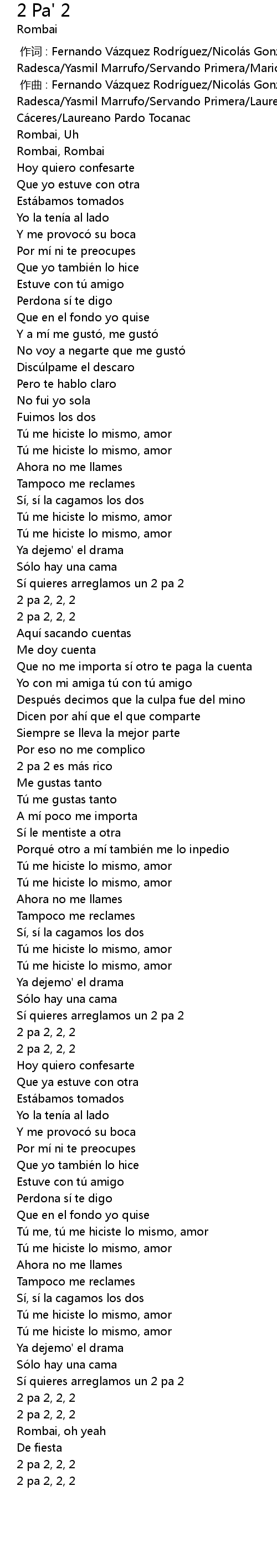 | [02:32.74] | Si quieres arreglamos un 2 pa 2 |