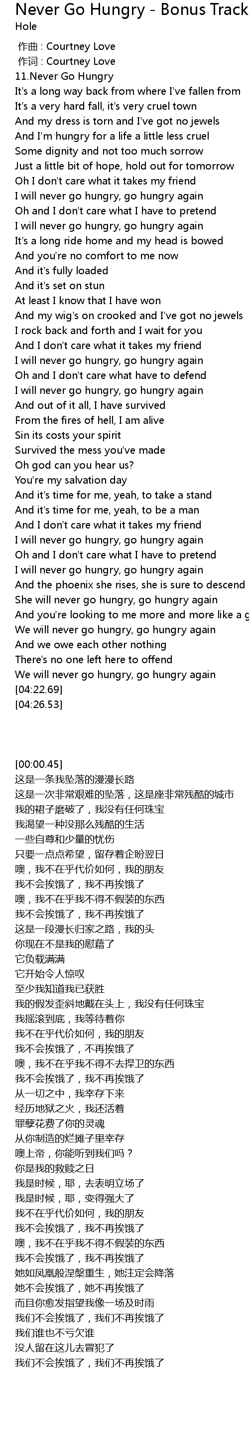 | [00:22.57] | And I' m hungry for a life a little less cruel |