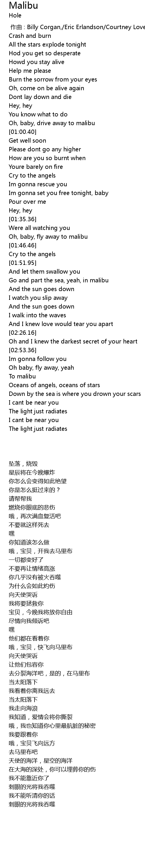 | [00:00.00] | 作曲 : Billy Corgan,/Eric Erlandson/Courtney Love |