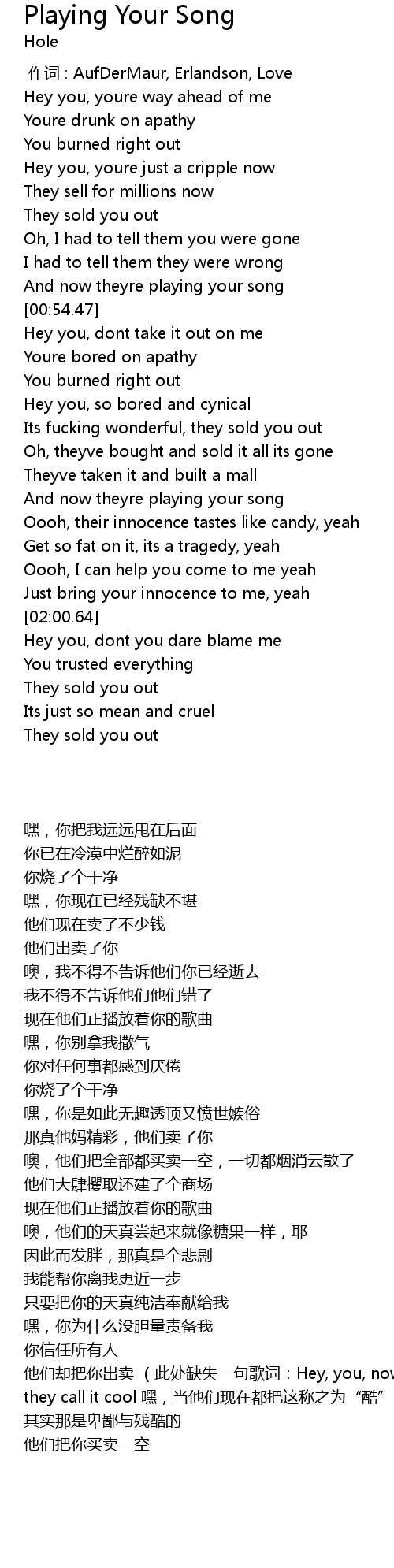 | [00:47.87] | And now theyre playing your song |
