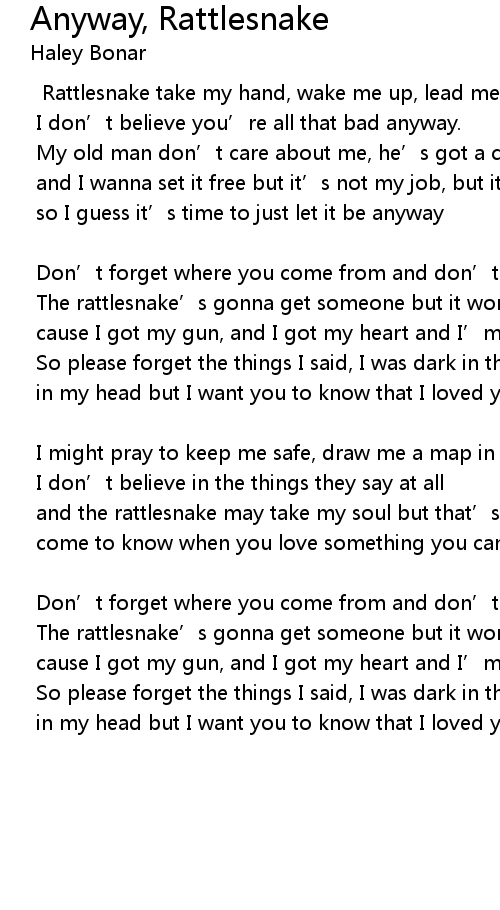 | Song | Anyway, Rattlesnake |