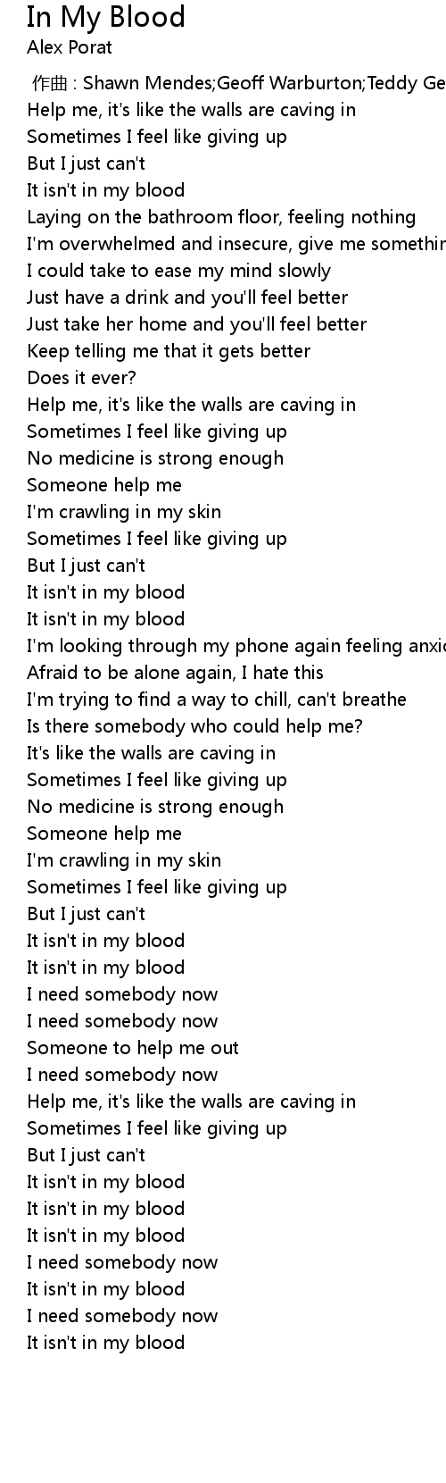 | [00:46.13] | Help me, it's like the walls are caving in |