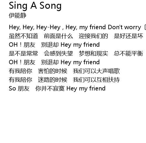 | Hey, Hey, HeyHey , Hey, my friend Don' t worry sin baishi naide bú yào dān xīn | |