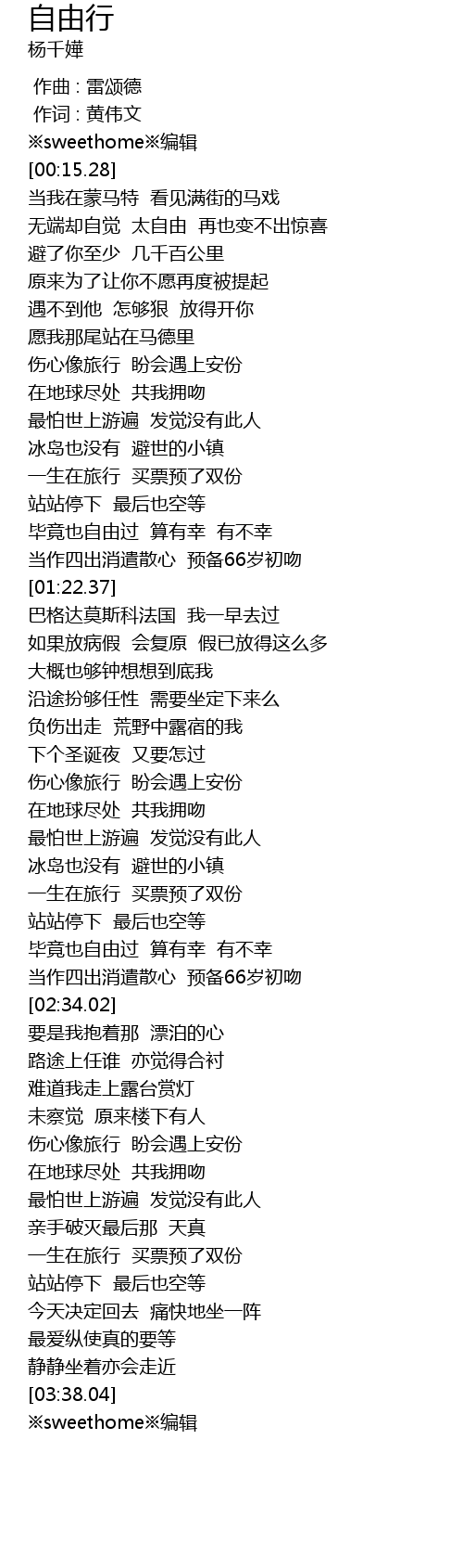 | [02:22.44] | 毕竟也自由过 算有幸 有不幸 |