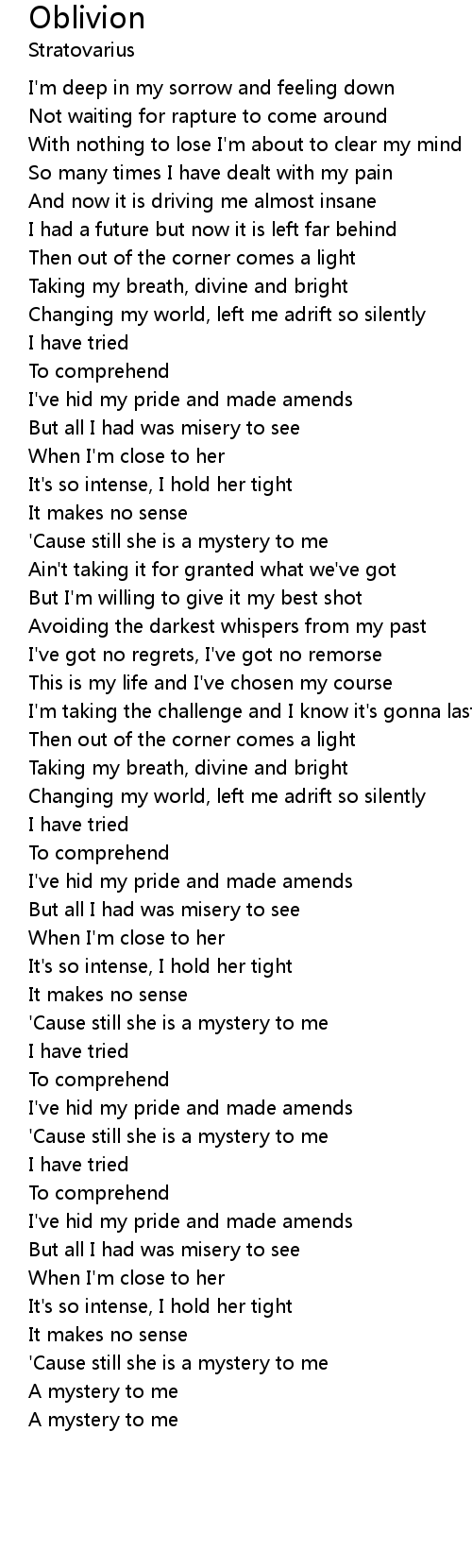 'Cause still she is a mystery to me |