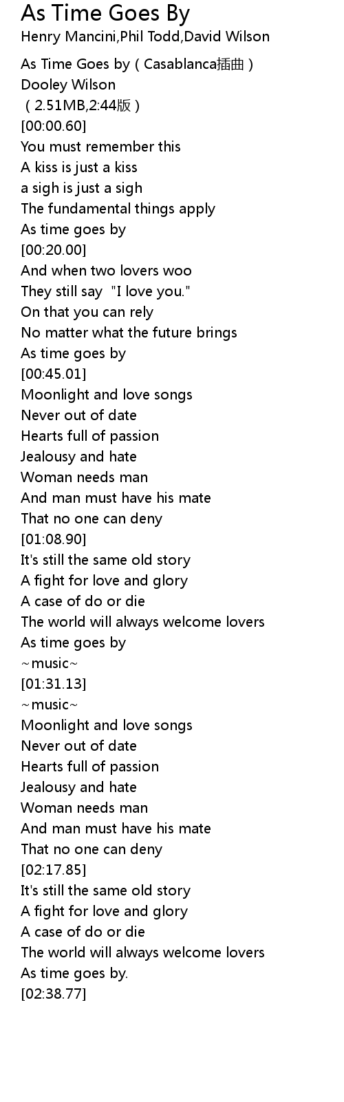 | [00:00.00] | As Time Goes by(Casablanca插曲) |
