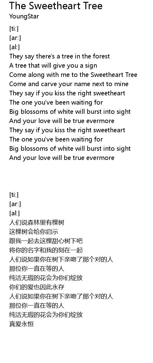 Come along with me to the Sweetheart Tree |
