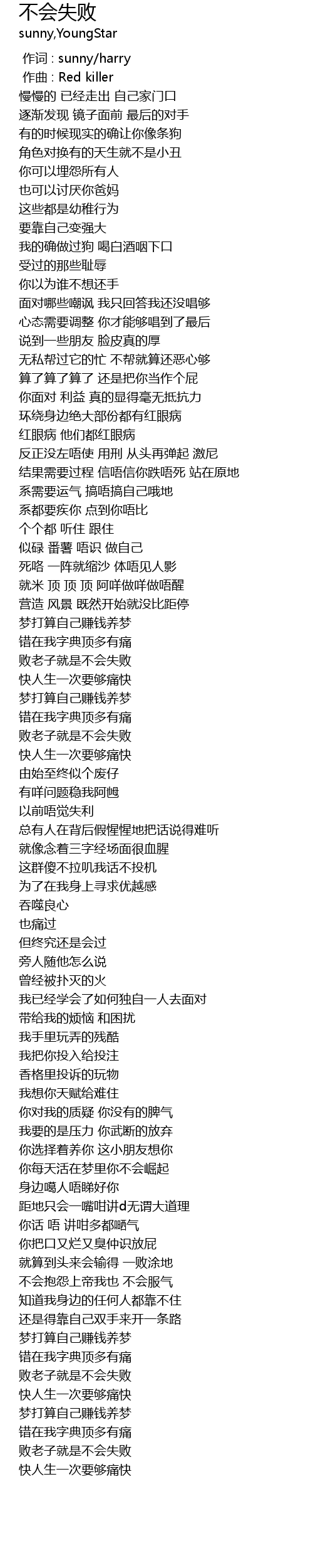 | [03:02.21] | 败老子就是不会失败 |