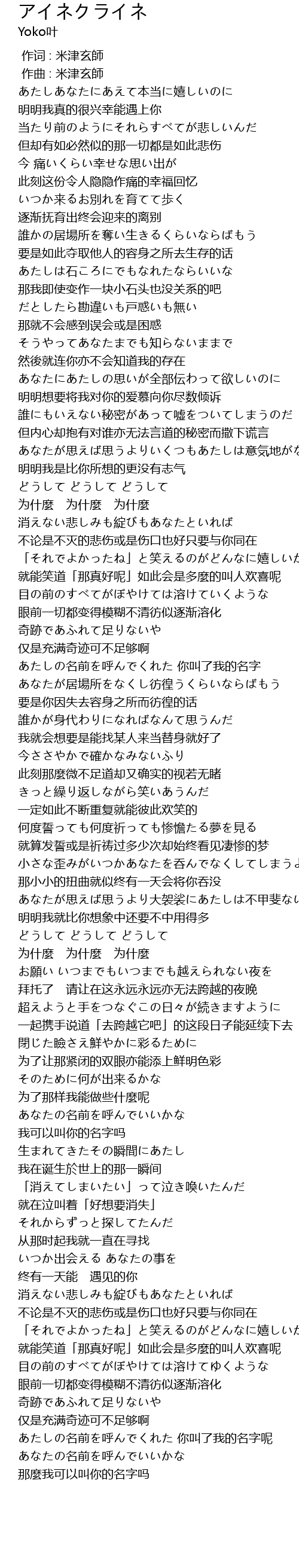 | [01:08.514] | どうして どうして どうして 为什麼 为什麼 为什麼 |
