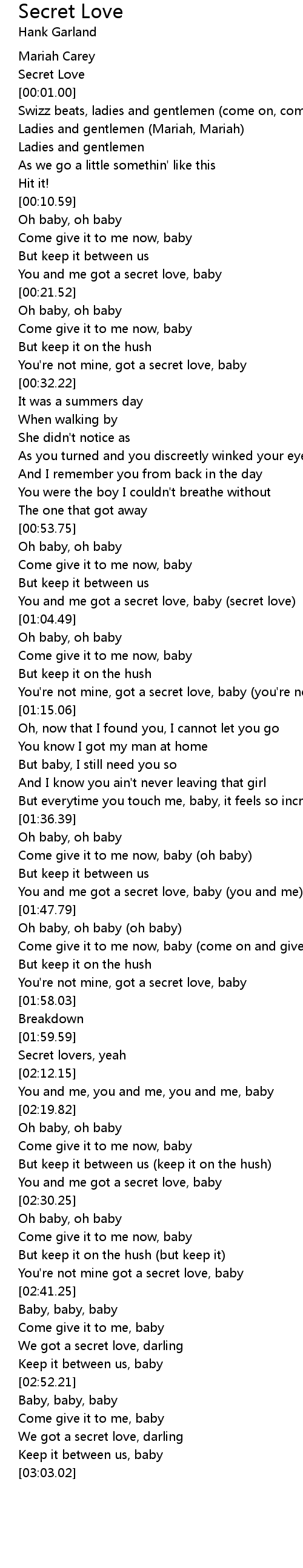 You and me got a secret love, baby (you and me) |