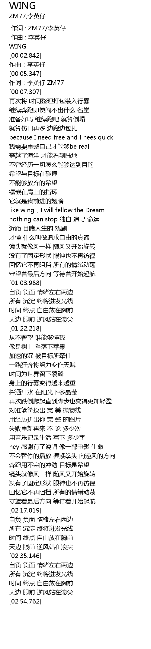 | [00:00.000] | 作词 : ZM77/李英仔 |