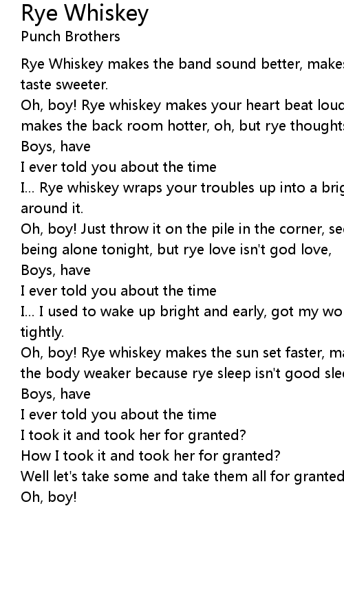 Rye Whiskey makes the band sound better, makes your baby cuter, makes itself taste sweeter. |