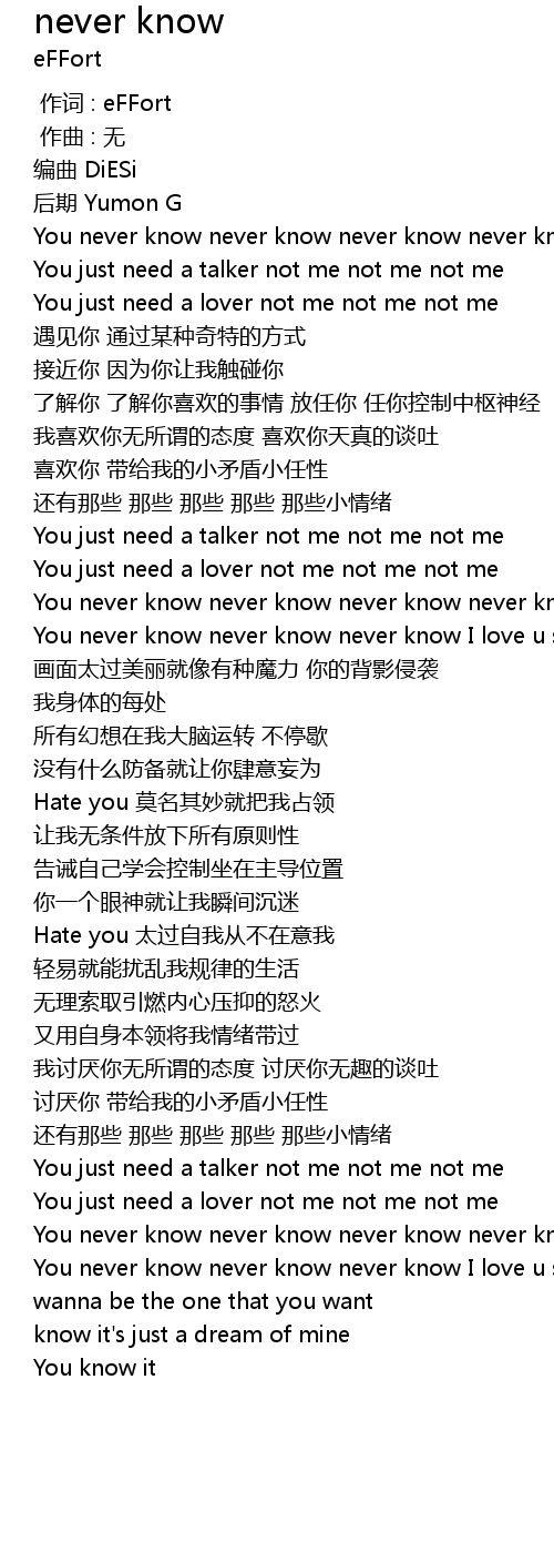 | [01:23.017] | You never know never know never know never know |
