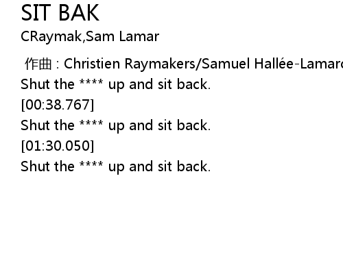 | [00:00.000] | 作曲 : Christien Raymakers/Samuel Hallée-Lamarche |
