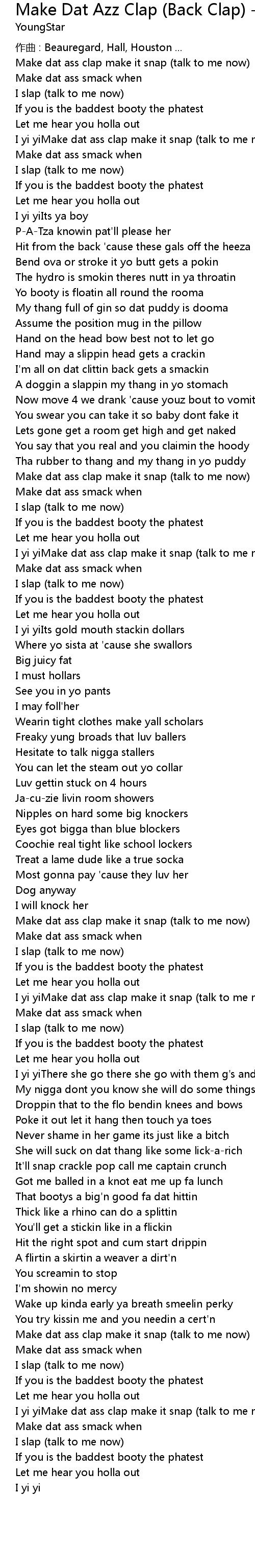 | Song | Make Dat Azz Clap (Back Clap) - Explicit Album Version |