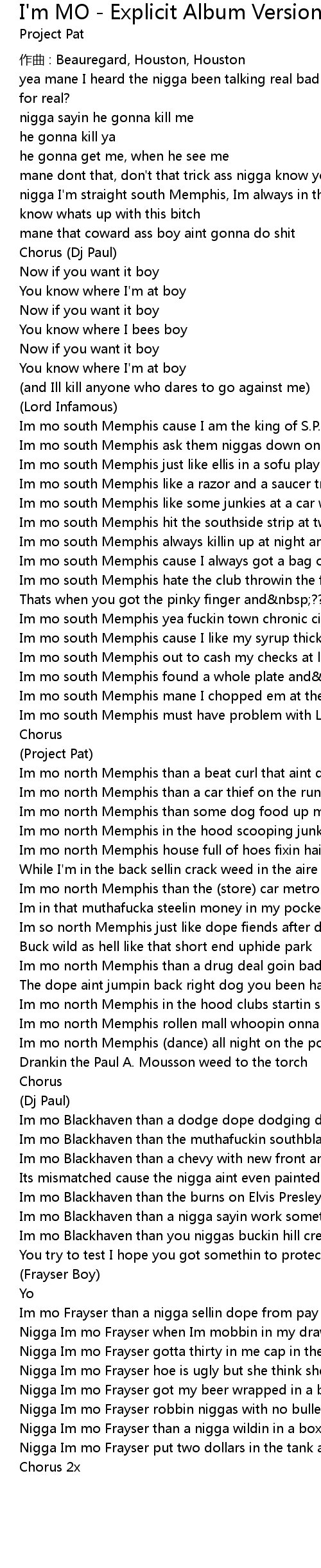 | Im mo south Memphis hit the southside strip at two o' clock | |