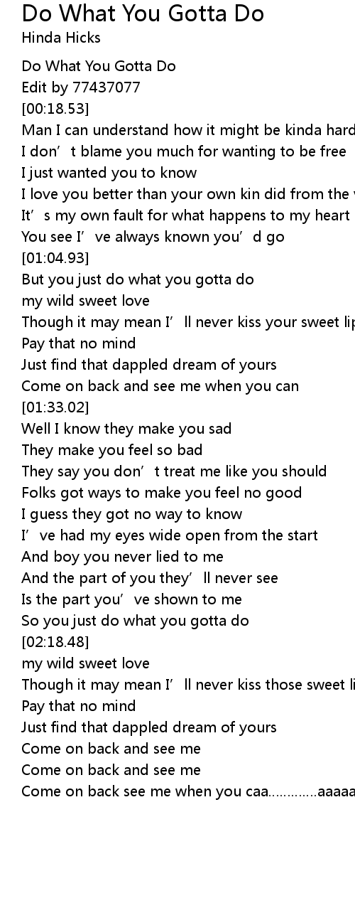 | [02:45.43] | Come on back see me when you caa. aaaaan oh oh |