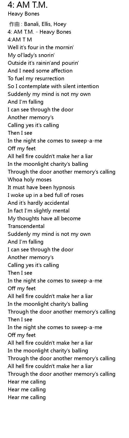 | [00:00.00] | 4: AM T. M. Heavy Bones |