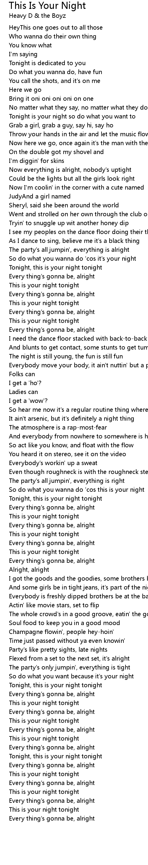 So do what you wanna do 'cos it's your night |