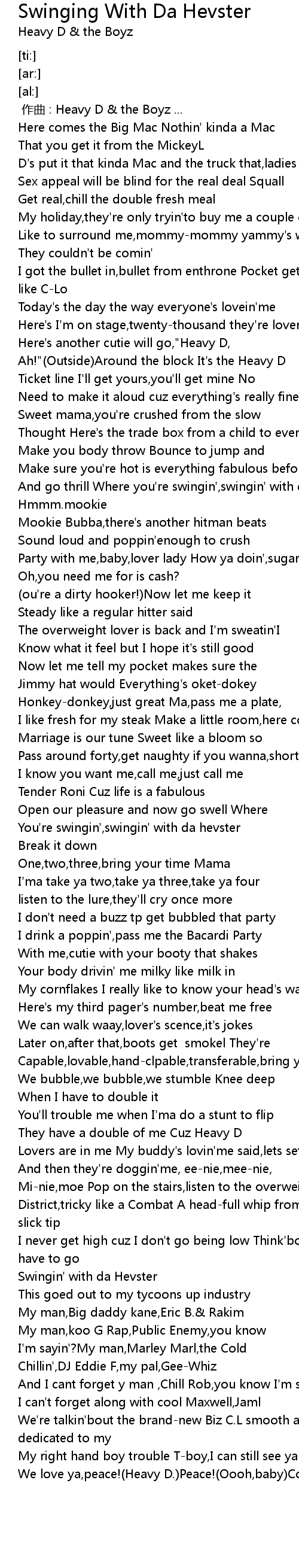 | [00:39.33] | Here' s another cutie will go," Heavy D, |