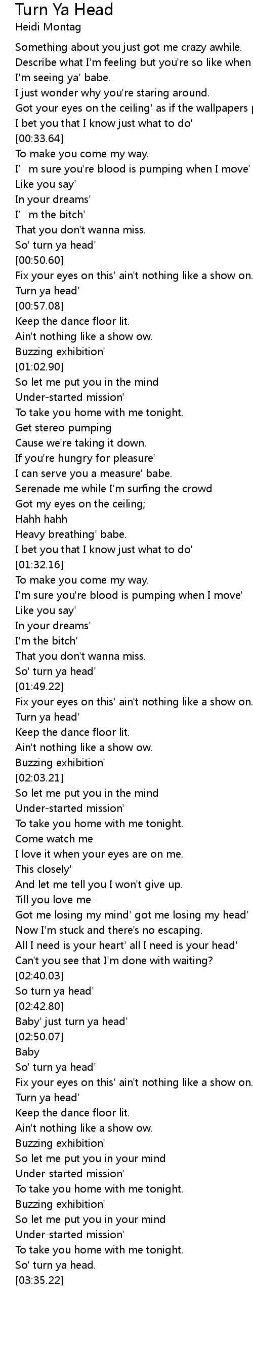 | [03:00.79] | Turn ya head' |