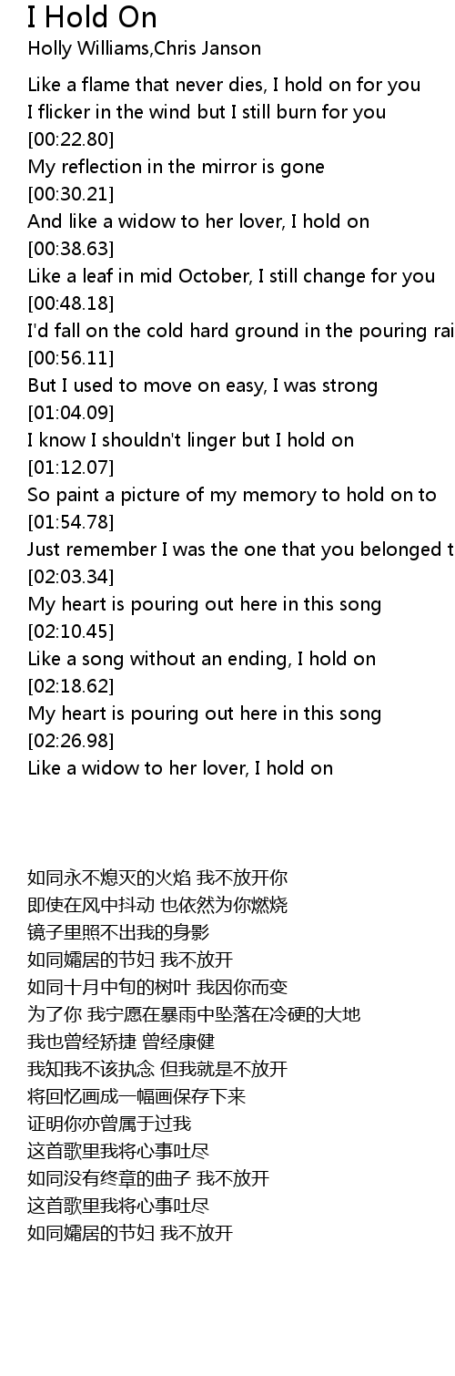 Like a song without an ending, I hold on |