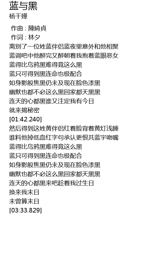 | [02:46.720] | 蓝得比鸟鸦黑难得竟这么黑 |