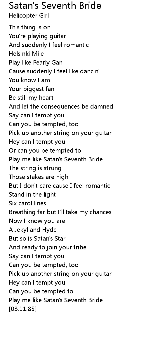 Play me like Satan's Seventh Bride |