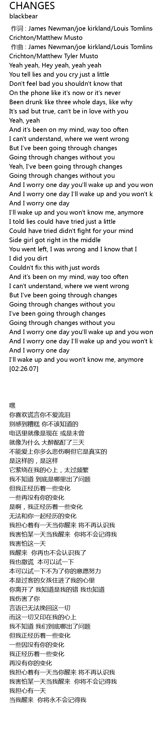 | [00:46.75] | Yeah, I' ve been going through changes |