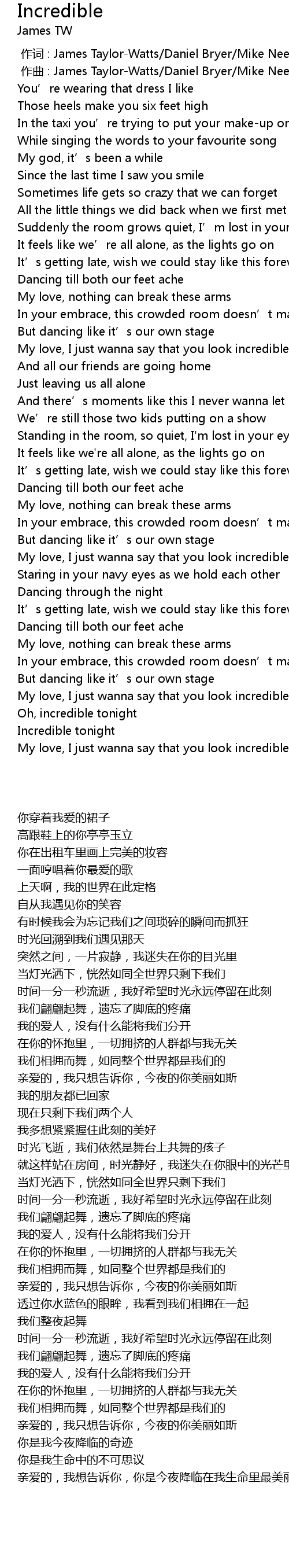 | [02:39.43] | My love, I just wanna say that you look incredible tonight |