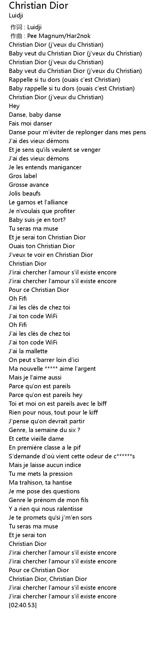 | [00:38.75] | Christian Dior (j'veux du Christian) |