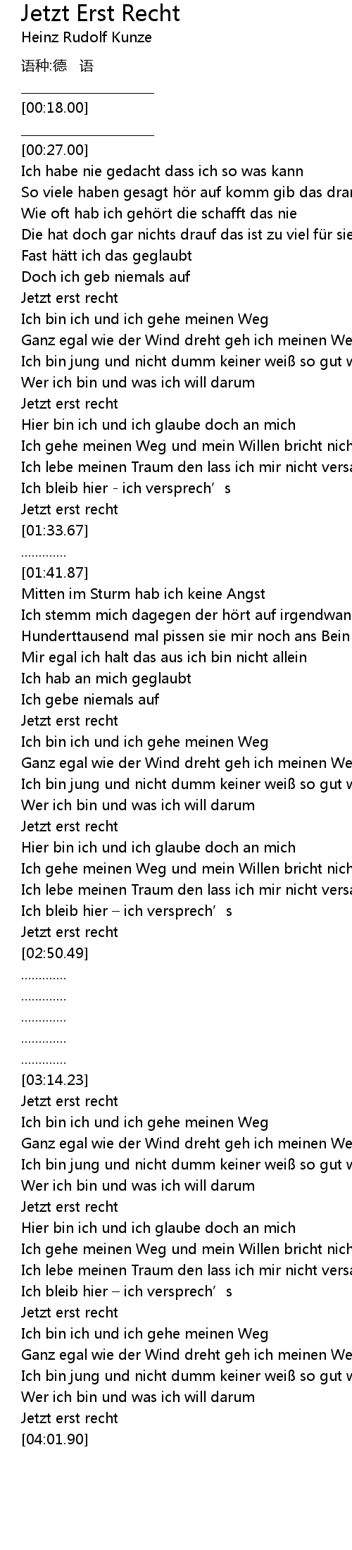 | [03:20.51] | Ich bin ich und ich gehe meinen Weg |