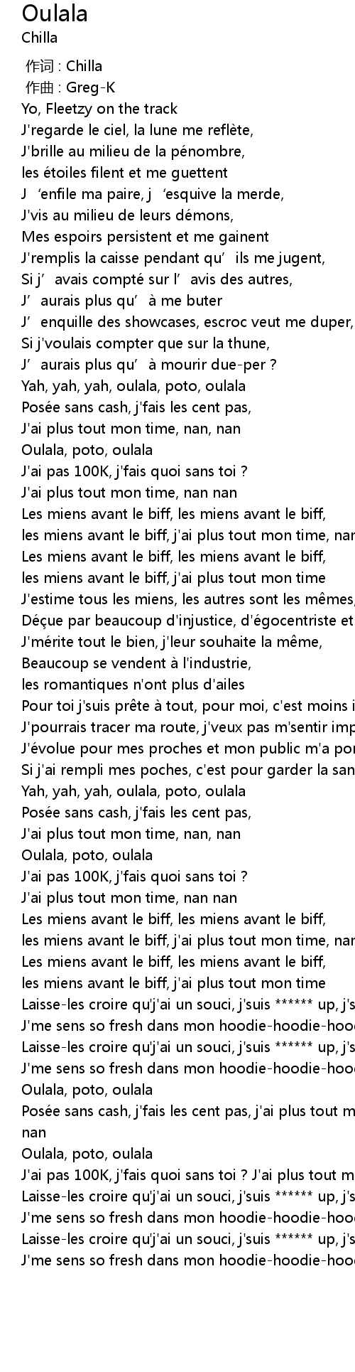| [02:13.43] | J' me sens so fresh dans mon hoodiehoodiehoodiehoodie, yeah |
