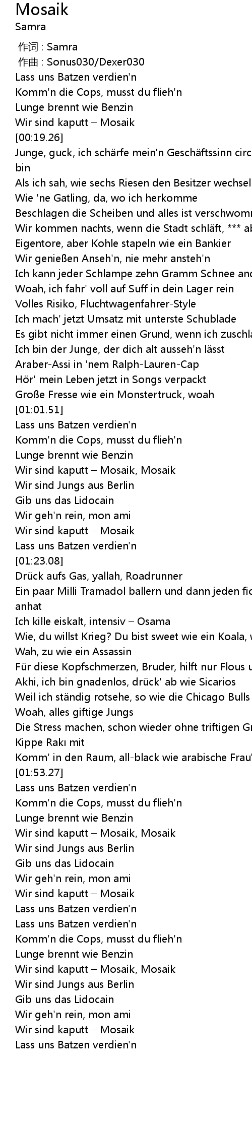 | [02:00.43] | Wir sind kaputt – Mosaik, Mosaik |