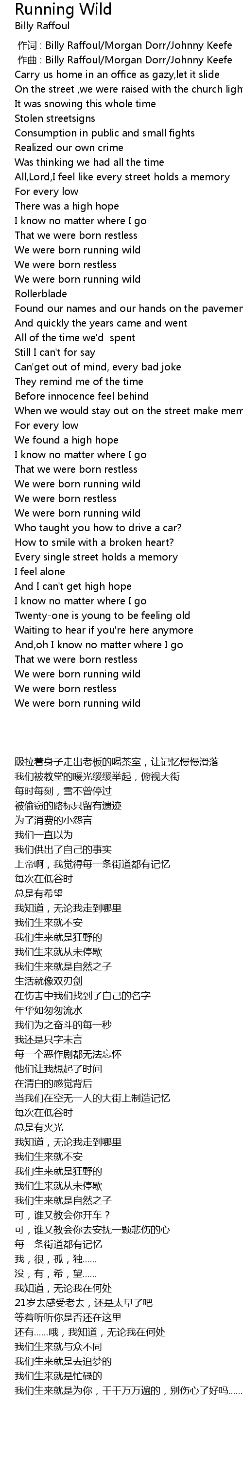 | [00:01.000] | 作曲 : Billy Raffoul/Morgan Dorr/Johnny Keefe |
